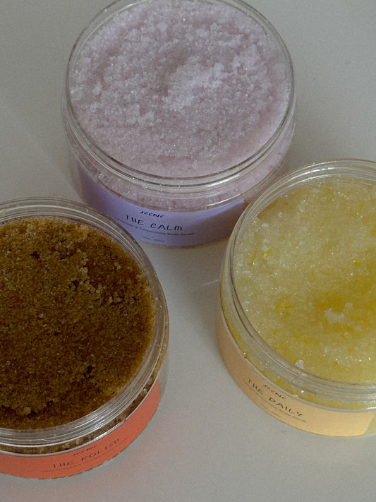 Discover our launch trio: Handcrafted body scrubs that nourish, exfoliate, and bring a touch of home to your skincare routine.